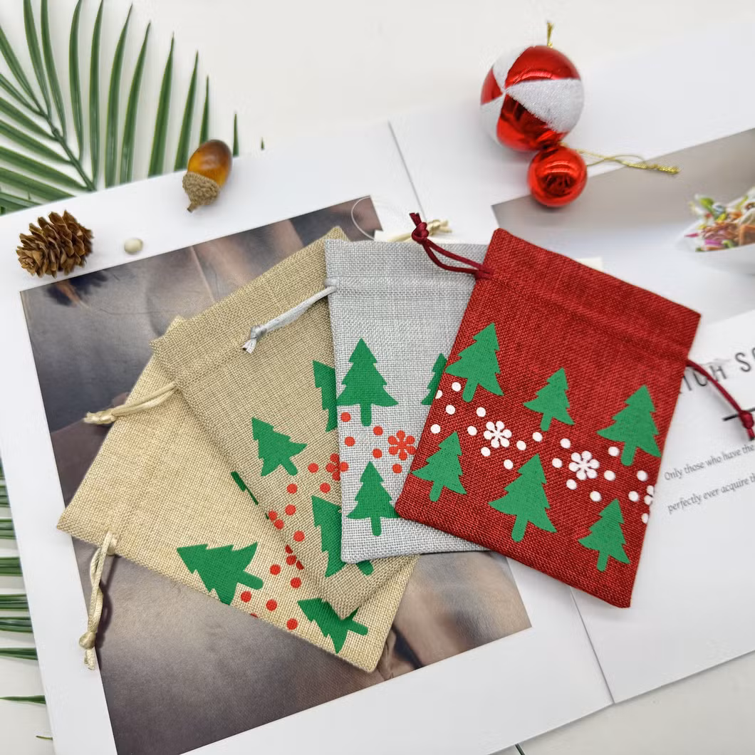 Sacchetto di Natale con coulisse per caramelle, sacco di Babbo Natale a quadretti